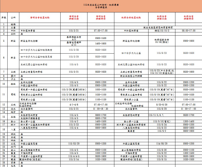 公告單位: 新北市政府殯葬管理處